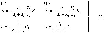@両棒が衝突した瞬間,それらの衝突面には式(3')より
