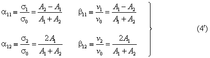 )として棒2中へ伝わるとすれば,応力の反射率及び透過率 a11 , a12 ,変位速度の反射率及び透過率 b11 , b12 は次式となる.