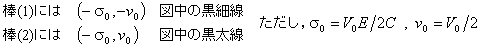 ( s0 , - v0 ) 図の赤細線 となって,棒(1)中へ引き返す.したがって,