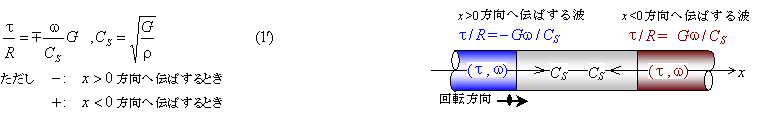 注)回転角速度は右ねじが進む方向がx>0方向となるものを正,トルクやせん断応力は正の面では右ねじが進む方向がx>0方向(負の面では右ねじが進む方向がx<0方向)となるものが正である.