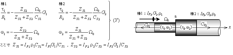 Cそして,棒(1),(2)の境界では反射波生じないから,これ以降すなわち,